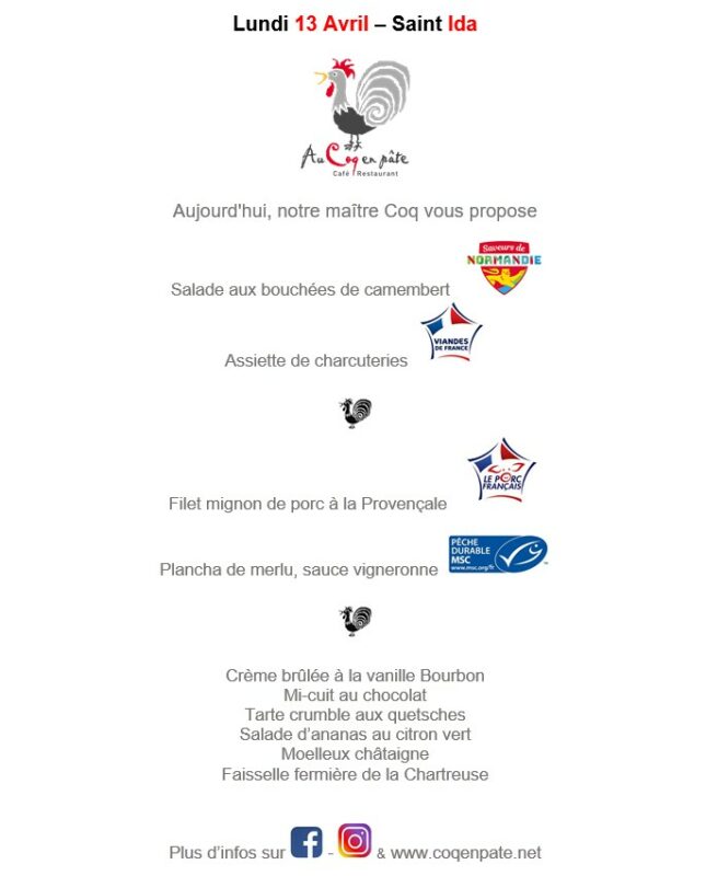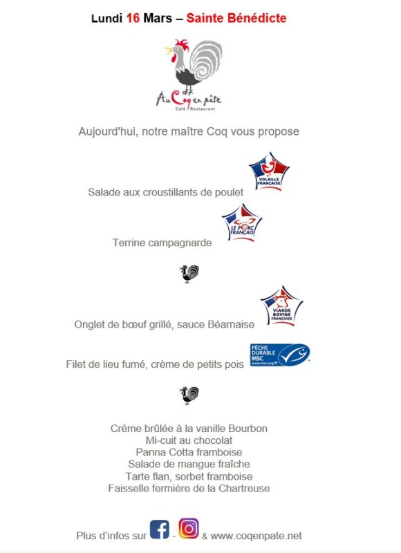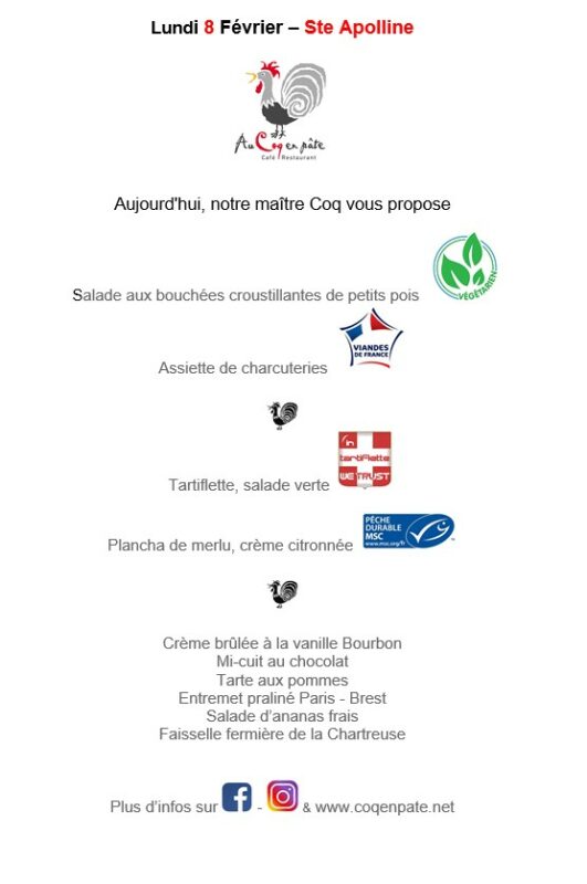 Venez déjeuner Au coq en pâte et goûtez à nos bonnes recettes !