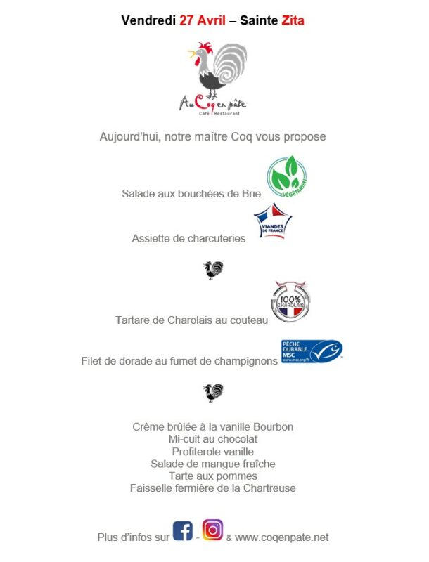Nous vous proposons donc de découvrir quotidiennement un menu différent, d’inspiration de la saison, du marché et privilégiant la qualité.